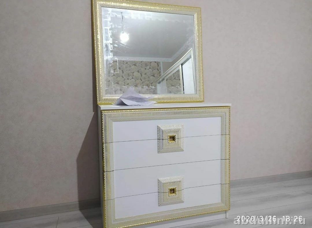 - Комод: три выдвижных ящика, сверху — прямоугольное зеркало.