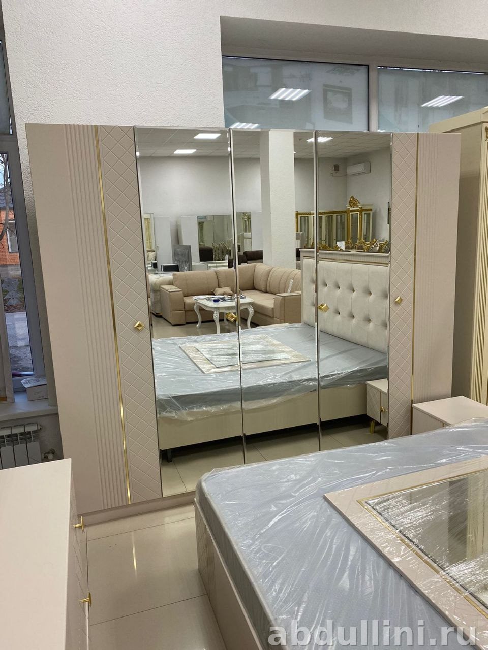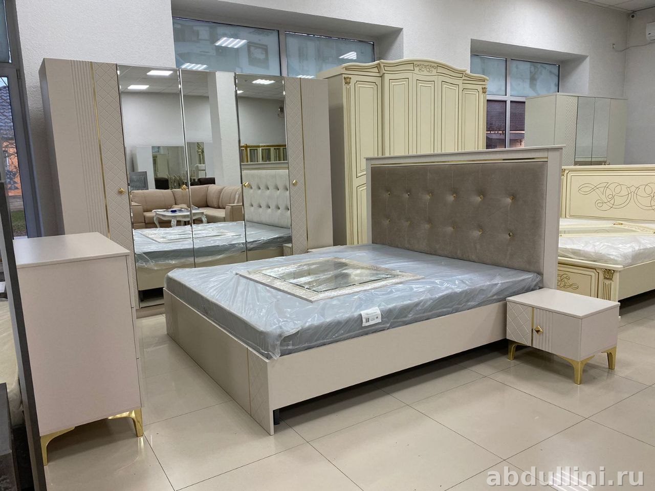 Мебельный комплект 674 — это готовое решение для вашей спальни. В набор входит всё необходимое: кровать с мягким изголовьем, две прикроватные тумбочки, комод с зеркалом и четырёхдверный шкаф. Каждый элемент выполнен в едином стиле и цветовой гамме, что создаёт красивый интерьер.