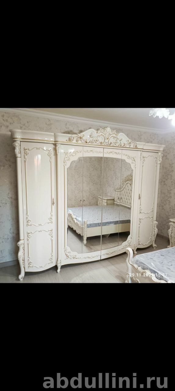 Мебель выполнена в классическом стиле с элементами современного дизайна. Подходит для просторных спален, создаёт гармоничную и уютную обстановку.
