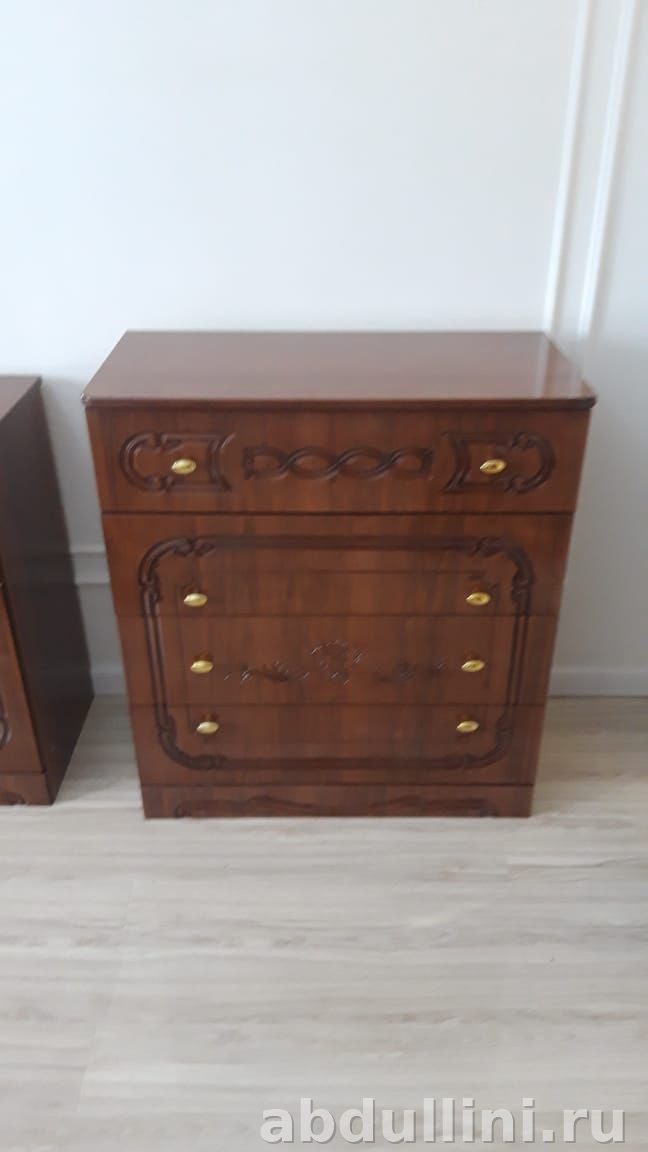 - Комплектация: кровать, 2 тумбочки, комод, шкаф