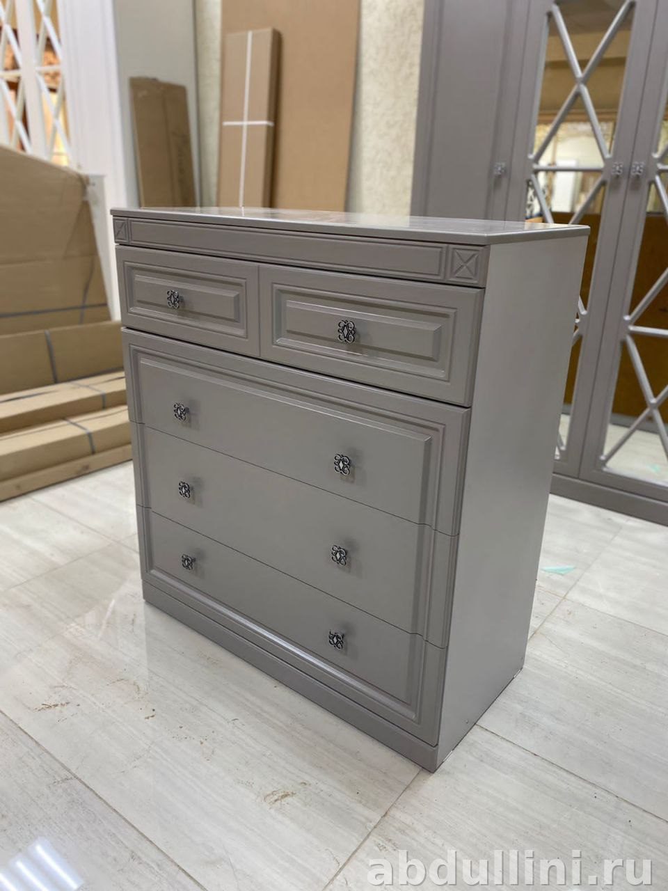 Спальня Александрия — готовый комплект в светло-сером цвете