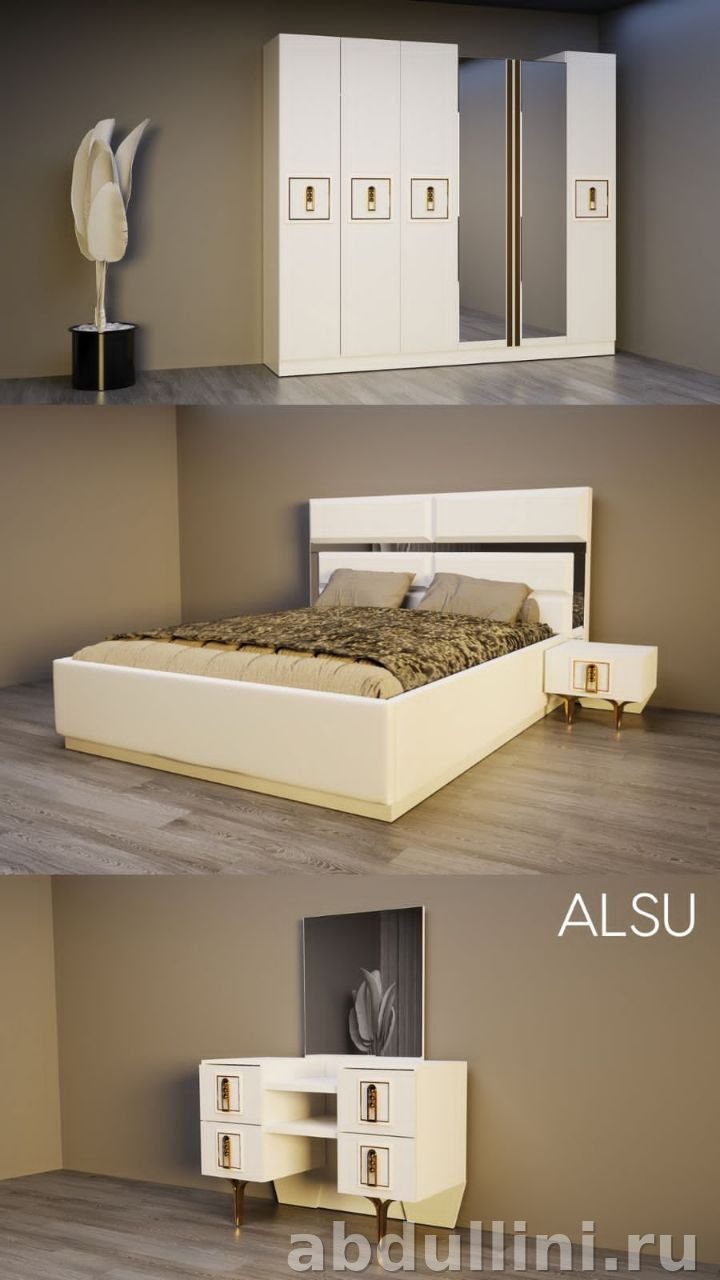 Комплект мебели «Алсу» от производителя ASIA BRAND — это современное решение для вашей спальни. Комплект выполнен в стиле неоклассики с акцентом на элегантность и практичность. Основной цвет — молочно-белый с глянцевым покрытием, что делает мебель визуально легкой и светлой.
