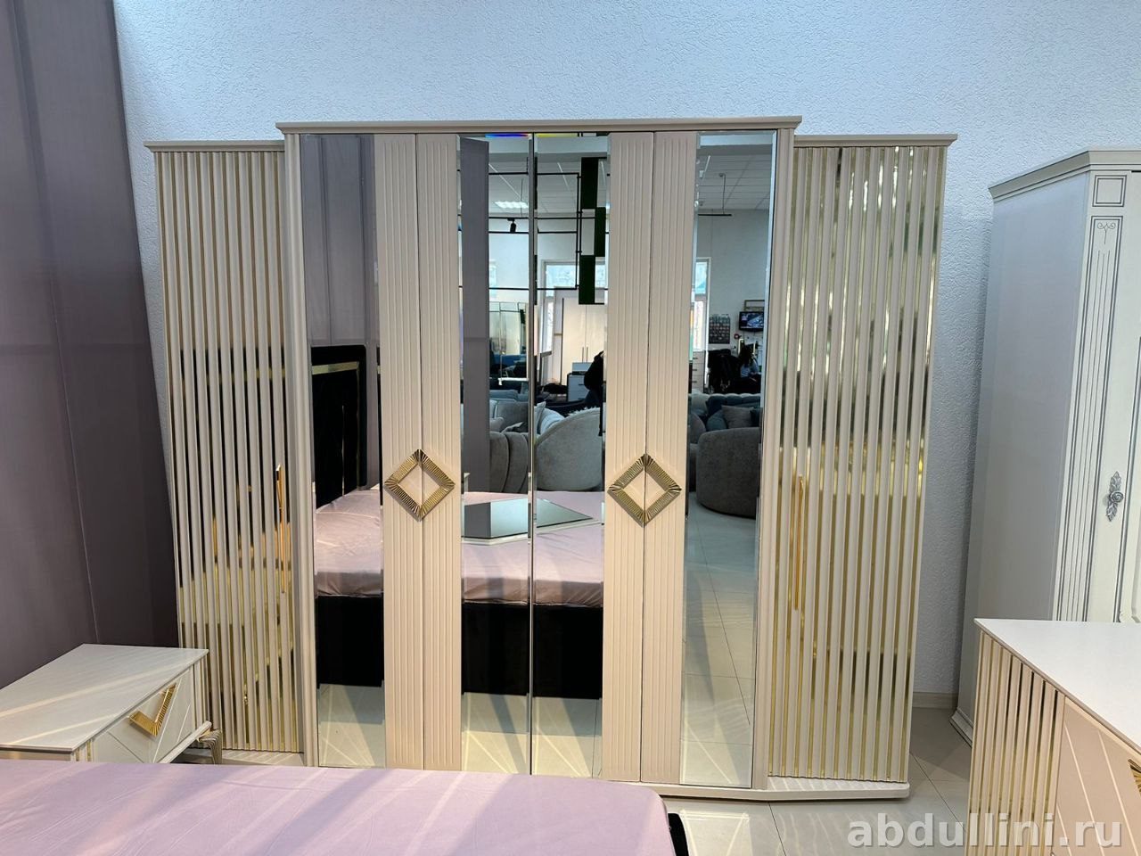 - Шкаф-купе: Трехстворчатый, с кремовыми фасадами и зеркальными дверями.