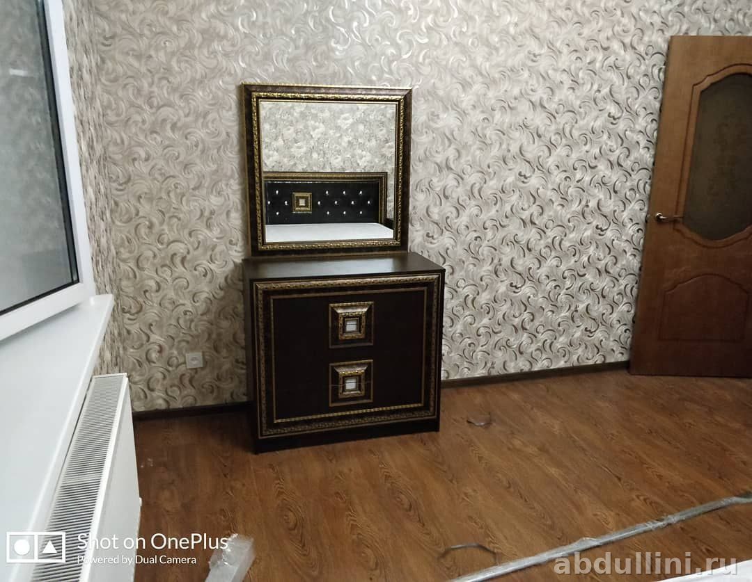 - В комплекте: шкаф-купе (3 двери, 2 зеркальные), кровать с мягким изголовьем, 2 прикроватные тумбочки