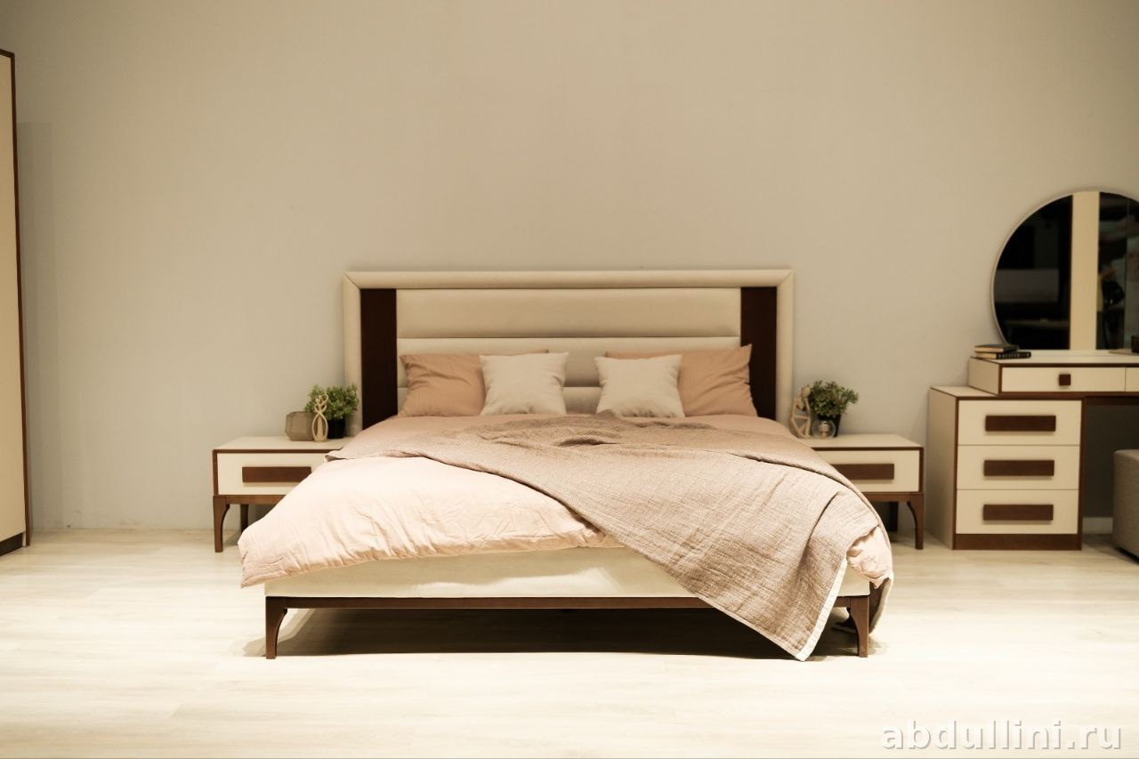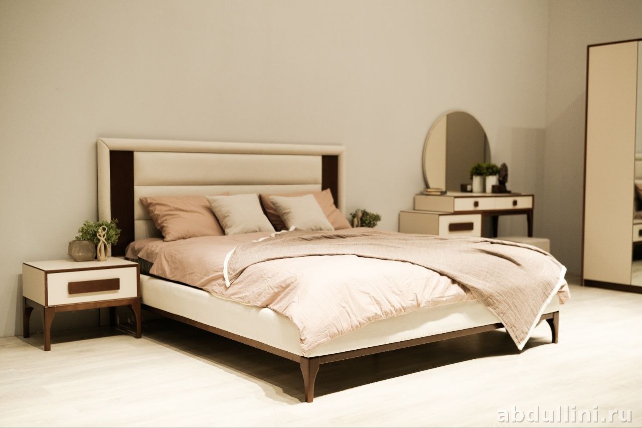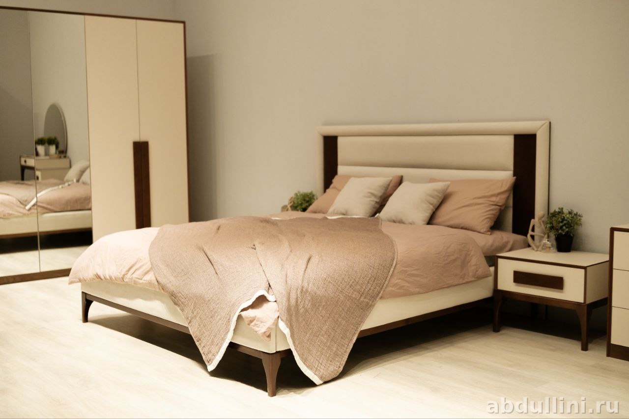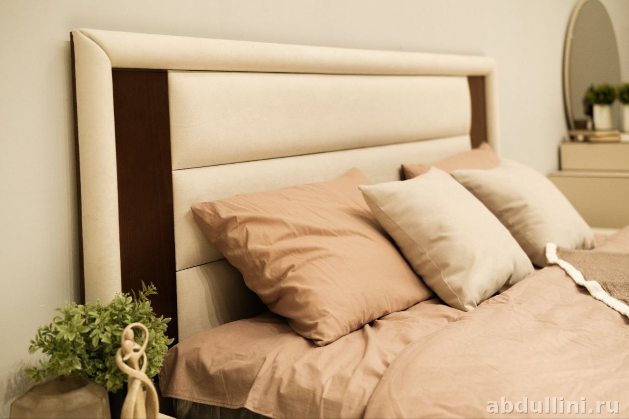 Элегантный спальный гарнитур в современном исполнении от производителя «Милана Груп» (Краснодар). Изысканное сочетание цветов сатин и орех создает атмосферу роскоши и уюта в вашей спальне.