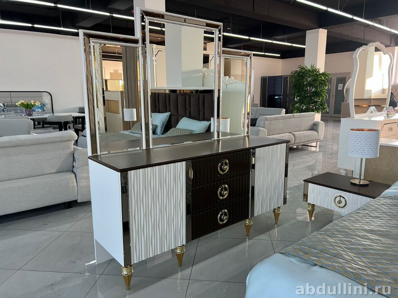 Гарнитур подойдёт для просторных спален. Сочетает простой дизайн с удобной конструкцией.