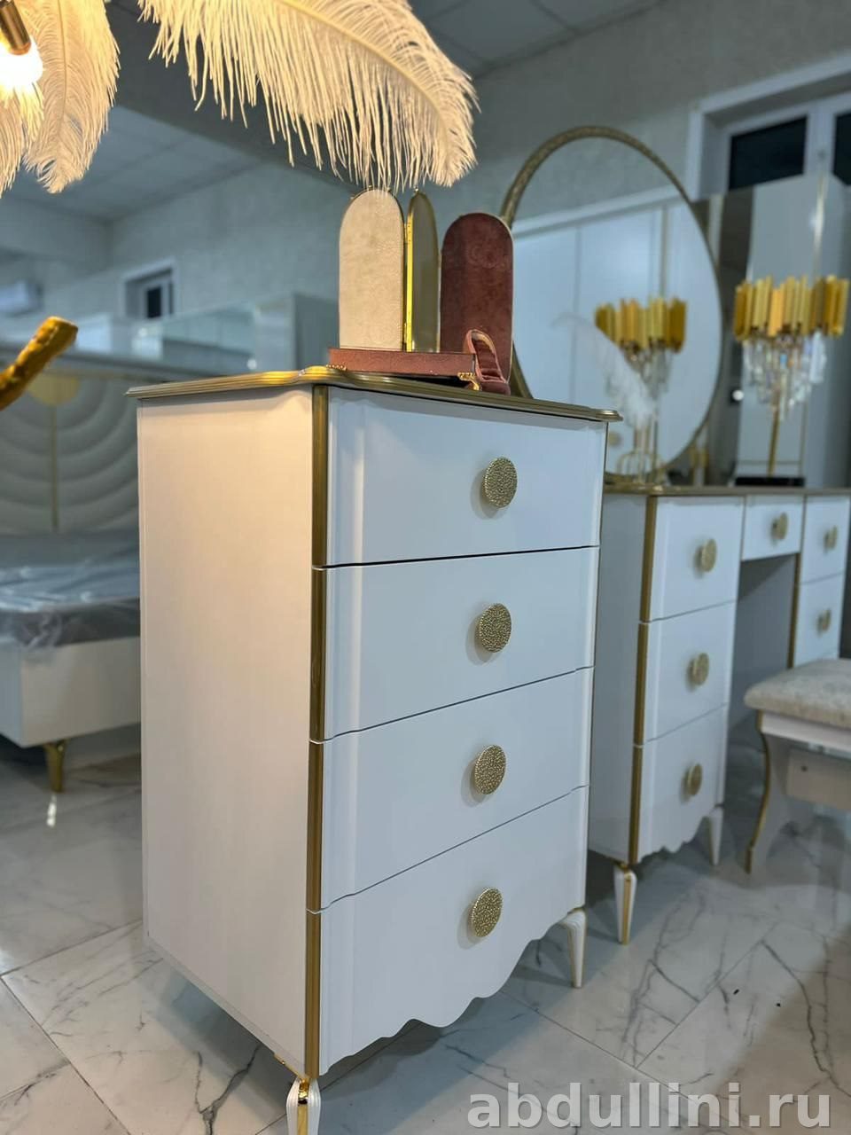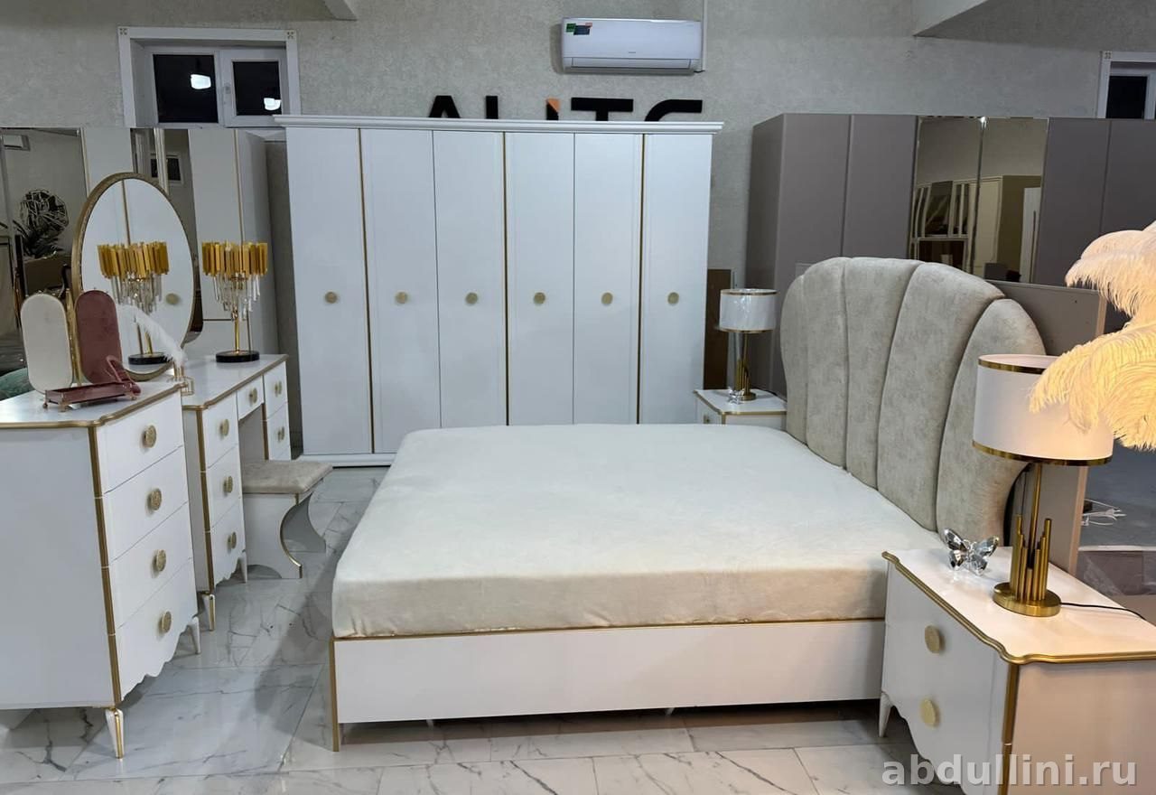 Комплект мебели для спальни Kumsal-Lux 1756 выполнен в стиле неоклассики с элементами современного дизайна. Основной цвет — белый с золотистыми акцентами. Мебель сочетает лаконичность и функциональность, подходит для создания уютного интерьера.
