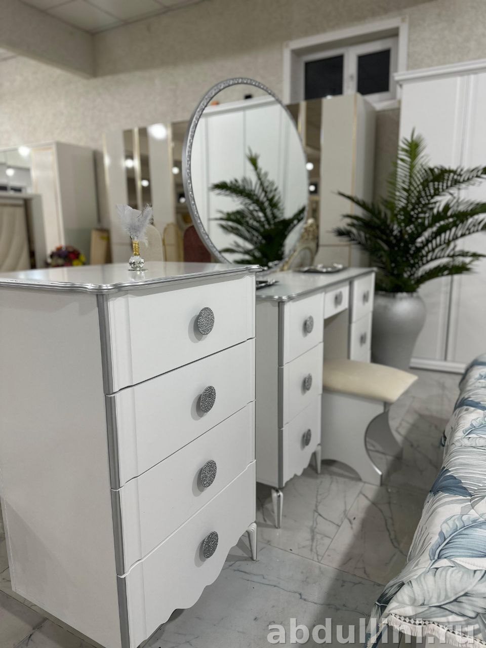 Спальня Kumsal-Lux — белый глянец с серебристыми деталями