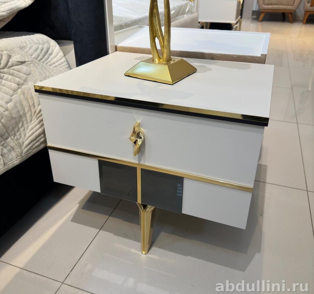 Материалы: ЛДСП/МДФ с матовой отделкой, металлические элементы с золотистым покрытием. Прочная конструкция, удобная сборка.