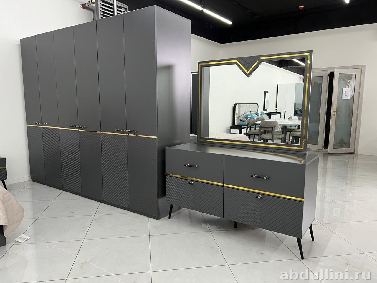 Стиль: модный с элементами ар-деко. Геометрические формы, сочетание темных тонов с золотом делают комплект универсальным для любого интерьера.