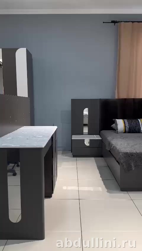 Спальня «Тера» от Milana Group — это удобный и стильный комплект мебели для спальни. В набор входит кровать, 6-дверный шкаф, прикроватная тумба, туалетный стол и зеркало. Цветовая гамма — графит с серебряными акцентами, что делает мебель универсальной для любого интерьера.