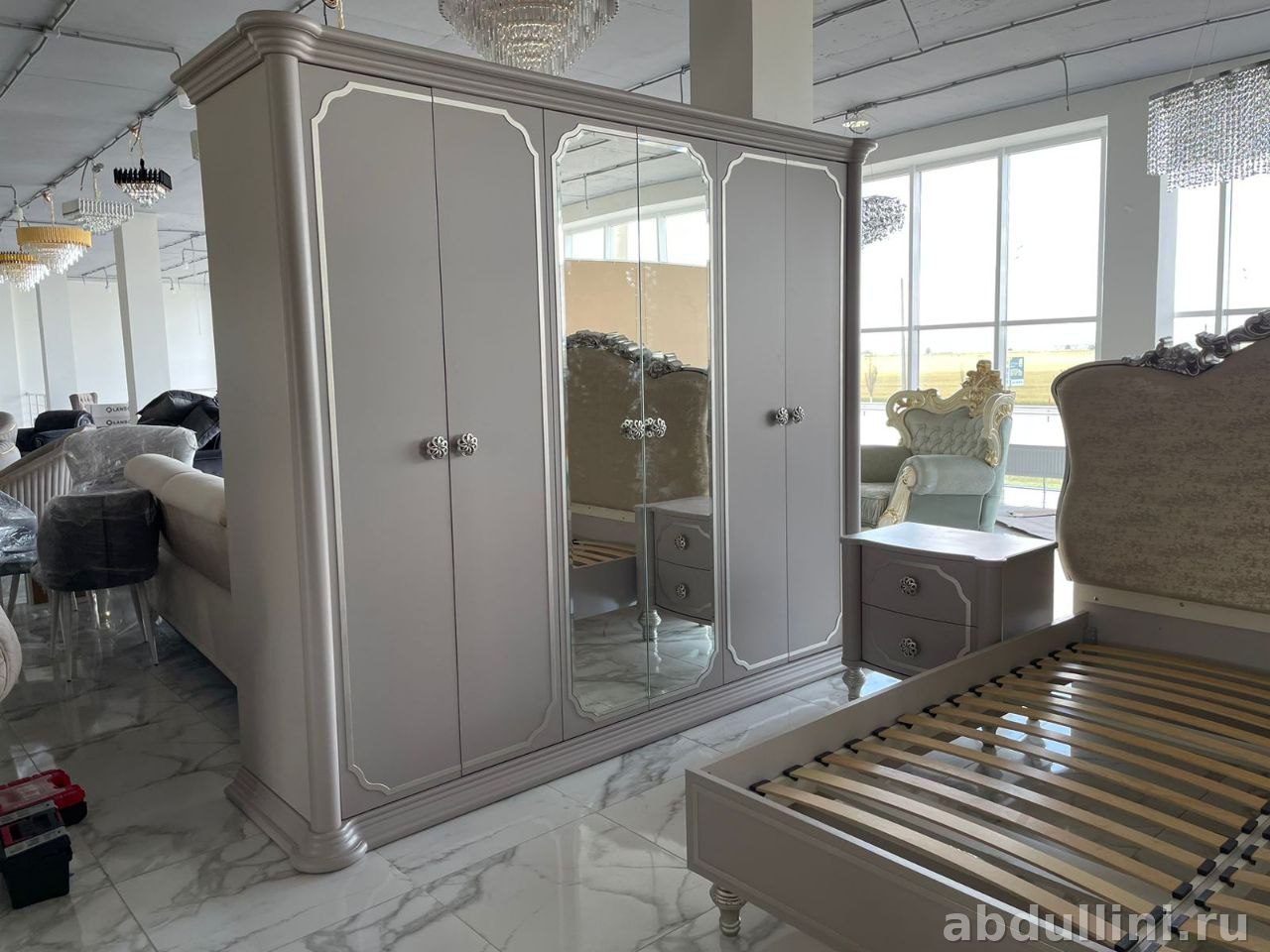 Новинка от белорусского производителя «SlonimMebel». Комплект в приглушенном серо-лиловом оттенке с матовой отделкой и серебристой окантовкой. Подойдет для тех, кто ценит детали и простой дизайн.