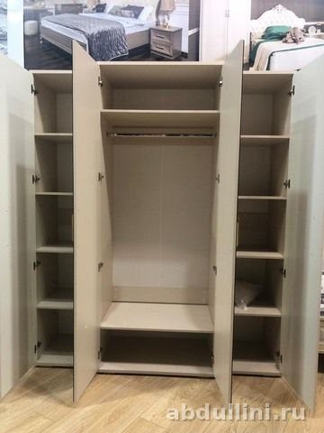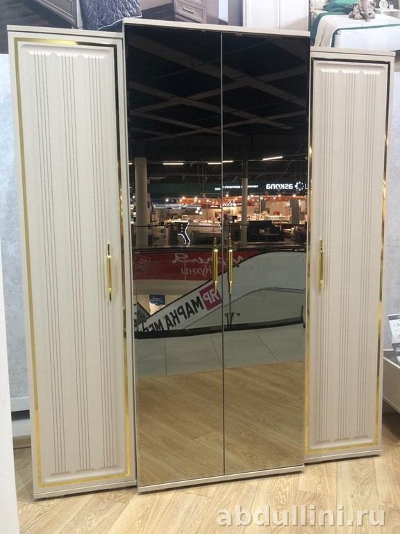 - Шкаф: 4 двери с зеркальными вставками, бежевый цвет.