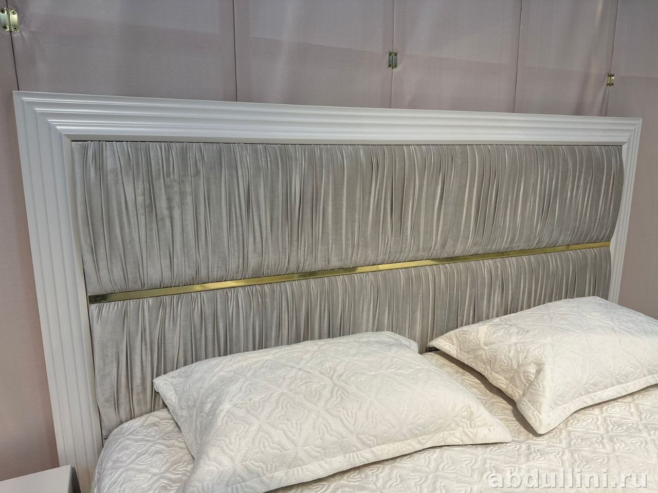 - Особенности: изголовье с мягкой обивкой, платформенное основание