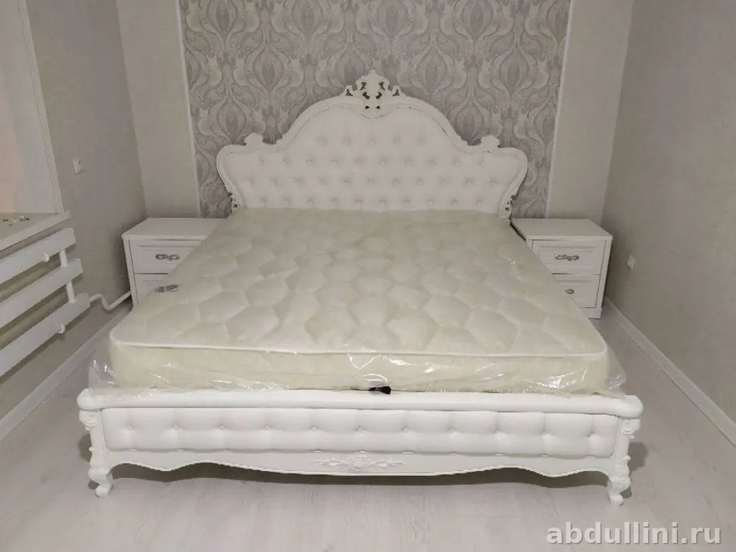 Полный комплект для спальни в классическом стиле. Белый матовый цвет, лаковое покрытие. Производитель — Abdullini.