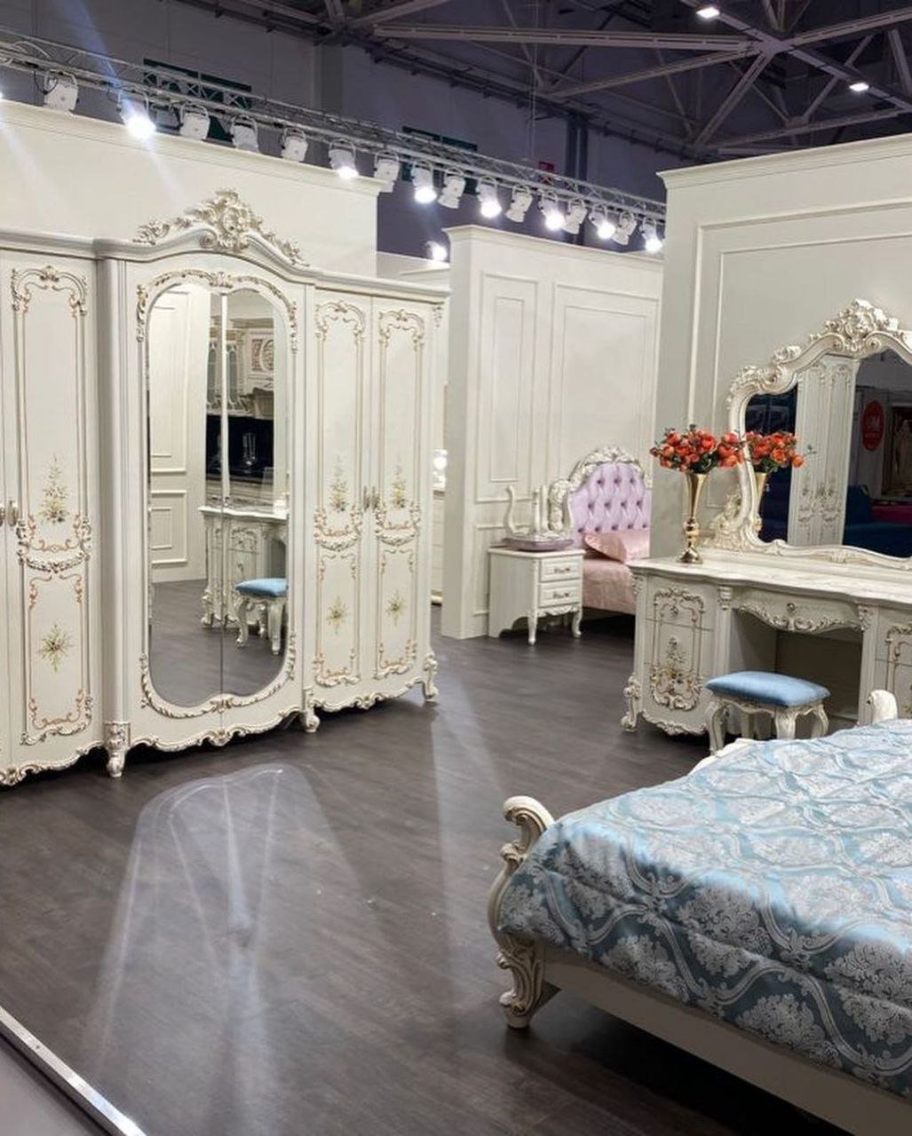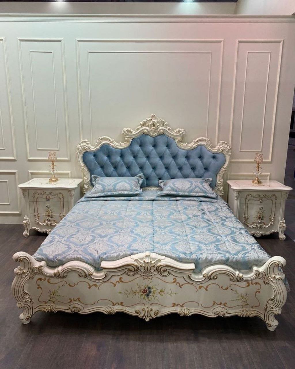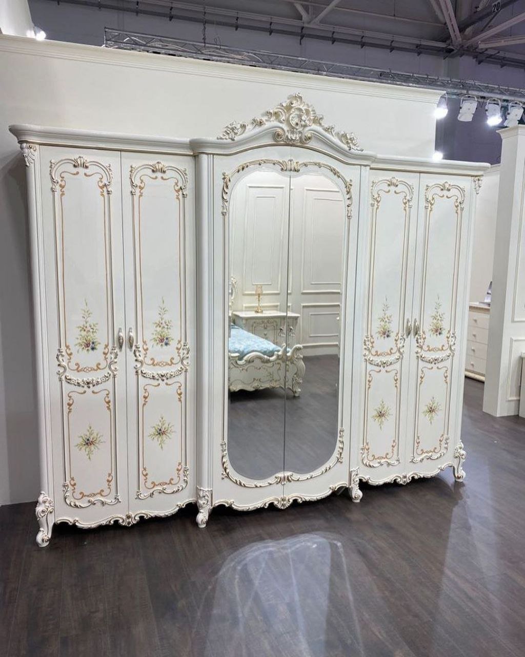 - Роскошный дизайн: Классический стиль, дополненный резными элементами и золотой патиной, создает атмосферу дворцового интерьера.