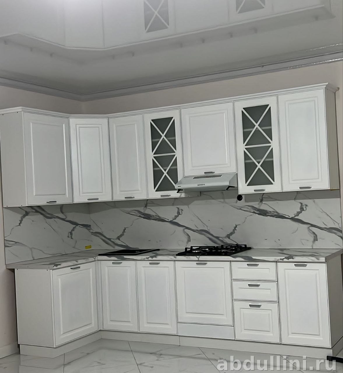 - Цвет: Белый матовый. Фасады с филенками и витринами, добавляющими элегантность.