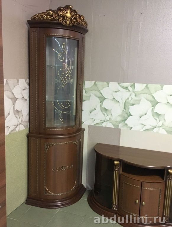 Угловой шкаф-витрина 3️⃣2️⃣3️⃣ — практичное и стильное решение для вашего интерьера. Этот шкаф выполнен в классическом стиле с элементами барокко, что делает его универсальным для гостиных, спален или кабинетов. Основной цвет — слоновая кость или тёмно-коричневый, дополненный золотистыми узорами и декором. Отделка поверхности — глянцевая или полуглянцевая, что подчеркивает изысканность дизайна.